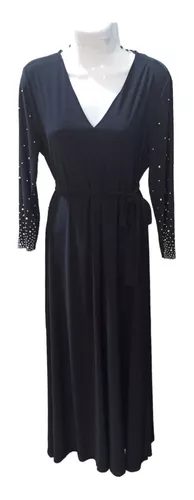 Vestido liso con pedrería en mangas ideal para eventos formales. cuello V, con un cinto de adorno que resalta tu figura. Elegante y de excelente calidad, completamente original de marcas americanas.